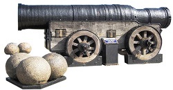 Пушки, в течение следующих двух столетий, становятся все больше. Есть несколько впечатляющих сохранившихся примеров. Монс Мег, датируемый 15-м веком и ныне находящийся в Эдинбургском замке, мог швырнуть железный шар диаметром 50 сантиметров на 2 километра.